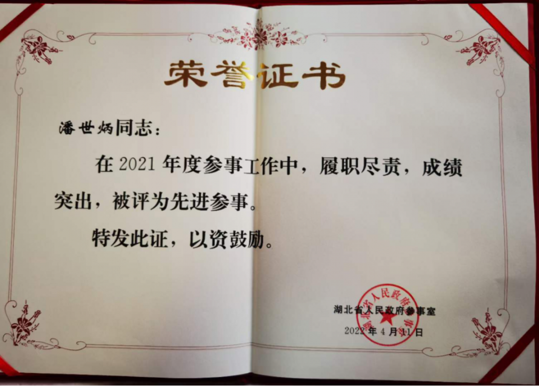 湖北省政府参事、永业行董事长潘世炳获评先进参事