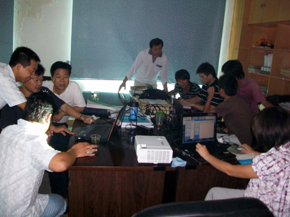 培训过程中,熊工特别强调了在项目运作过程中按照矿业权实地核查方案进行野外实测的重要性和必要性,并示范了采矿权实地核查记录表、对照表的填写方法。吴工详细讲解了包括MapGIS北京54坐标系转换西安80坐标、AutoCAD图转MapGIS制作及误差校正、MapGIS转ArcGIS shp格式等建立数据库的技术要点。黄冈分部地矿部全体员工对建立数据库的操作方法进行了演练,并结合熊工、吴工的讲解内容和日常工作中遇到的技术难题展开了交流、讨论。
